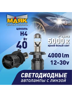Лампа H4 LED светодиодная мини-линза Z5+, 2 шт
