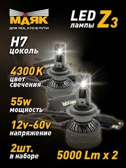 Лампа H7 автомобильная LED светодиодная Z3 4300К, 2 шт