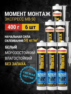 Жидкие гвозди Монтаж экспресс МВ-50 белый 400 гр 6 шт