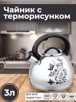 Чайник со свистком для плиты нержавеющий терморисунок 3 л