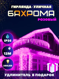 Новогодняя уличная гирлянда бахрома 12 метров розовая