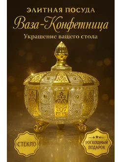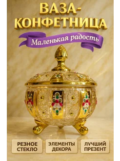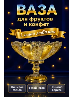 Ваза конфетница золотая для конфет подарочная