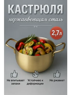 Кастрюля золотая матовая 2 7 литров нержавеющая сталь