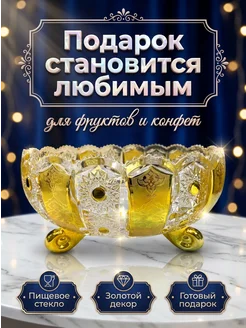 Ваза конфетница фруктовница золотая подарочная