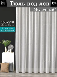 тюль под лен молочный 150х270 в спальню 2шт