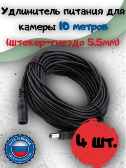 Удлинитель питания камеры видеонаблюдения 10 метров 4 шт