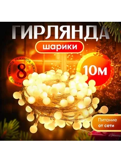 Гирлянда Шарики светодиодная для дома 10 м снежинка