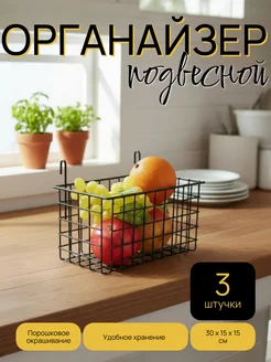 Корзина для хранения, для мудборда, на сетку, 3шт цв. черный
