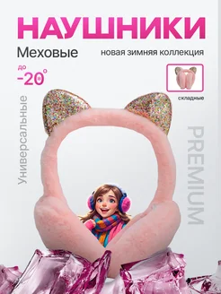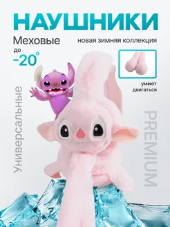 Наушники теплые меховые лабубу с поднимающимися ушками