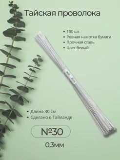 Тайская Проволока обмотанная тейп-лентой №30 100шт белая