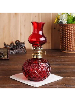 Лампада масляная стеклянная красная бочонок 19 см