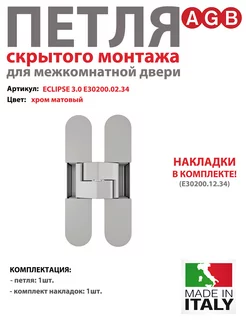 Петля ECLIPSE 3.0 скрытого монтажа, матовый хром