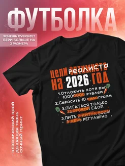 Футболка новогодняя с принтом Цели реалиста на 2026 год