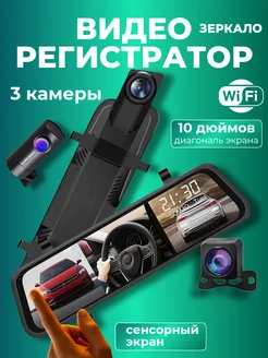 Видеорегистратор зеркало wi-fi для автомобиля 3 камеры