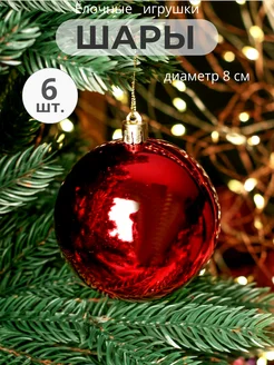 Набор шаров 8 см, пластик, красный, глянцевый, 6 шт
