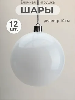 Набор шаров 10 см, пластик, белый, глянцевый, 12 шт