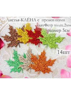 Листья-КЛЕНА осенний С ПРОЖИЛКАМИ фетр-глиттер размер 5см