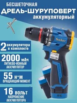 Шуруповерт аккумуляторный бесщеточный 2 АКБ 16 v 2000 mA*h
