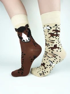 Разнопарные прикольные носки с лошадьми Символ Года непарные