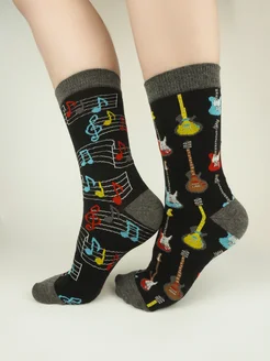 Прикольные носки с гитарами и нотами Рок-н-ролл разнопарные