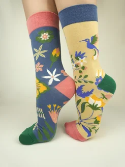 Прикольные носки с цветами и птичками Колибри разнопарные