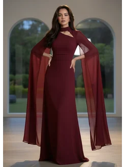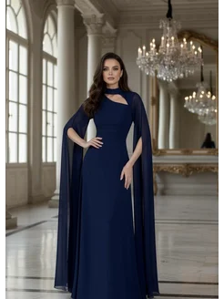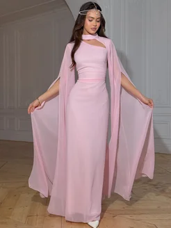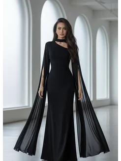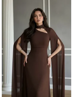 Платье с кейпом вечернее праздничное с красивыми рукавами