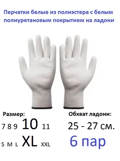 Перчатки строительные белые из полиэстера с ПУ покрытием