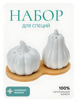 Набор для специй фарфоровый на деревянной подставке Тыква