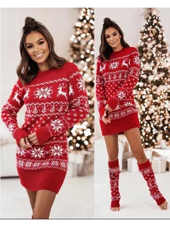 Туника новогодняя вязаная Свитер удлиненный