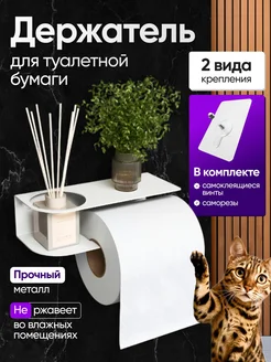 Держатель для туалетной бумаги самоклеящийся с полочкой
