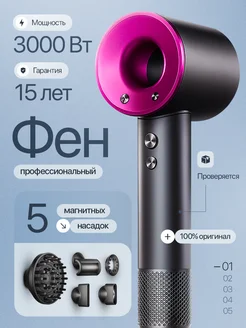 Фен для волос профессиональный мощный с насадками 5в1