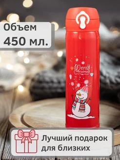 Термос новогодний для чая и кофе в школу 450 мл