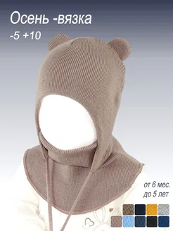 Шапка Мишка + аксессуар с завязками ластик-вязка демисезон