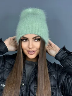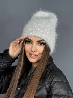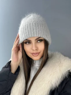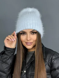 Шапка женская пушистая вязаная зимняя из ангоры