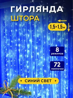 Гирлянда штора светодиодная 1,5 на 1,5м синое свечение