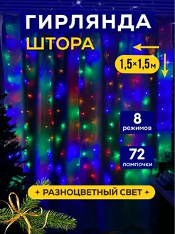 Гирлянда штора светодиодная 1,5 на 1,5м цветное свечение