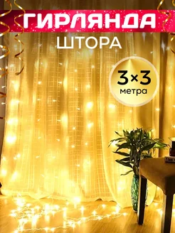 Гирлянда штора светодиодная 3 на 3м желтое свечение