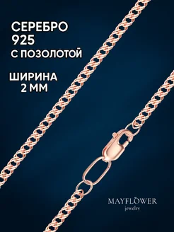 Цепочка серебряная 925 на шею позолоченная ювелирная