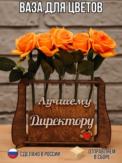 Ваза деревянная с колбами лучшему директору