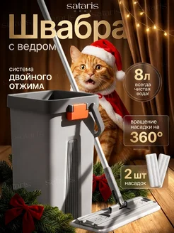 Швабра с отжимом и ведром для пола 8 литров