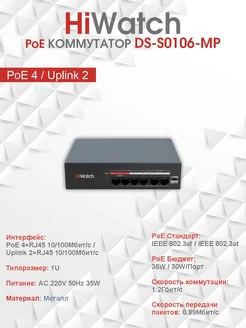 PoE Сетевой Коммутатор 4 портовый DS-S0106-MP