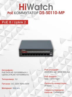 PoE Коммутатор сетевой 8 ми портовый DS-S0110-MP