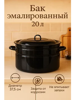 Кастрюля эмалированная 20 литров, с крышкой