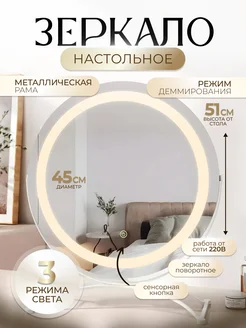 Зеркало настольное с подсветкой для макияжа большое