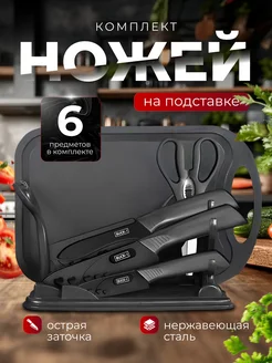 Набор кухонных ножей из нержавеющей стали на подставке