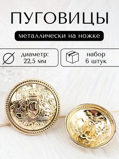 Металлические пуговицы на ножке диаметр 22,5 мм, 6 штук