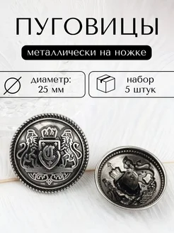 Металлические пуговицы на ножке диаметр 25 мм, 5 штук