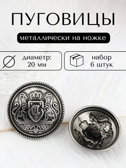 Металлические пуговицы на ножке диаметр 20 мм, 6 штук