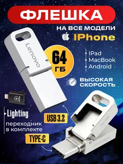 Флешка для IPhone 15 16 pro max Android IPad MacBook 64 Гб