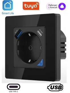 Умная розетка WiFi встраиваемая с USB и Type-C